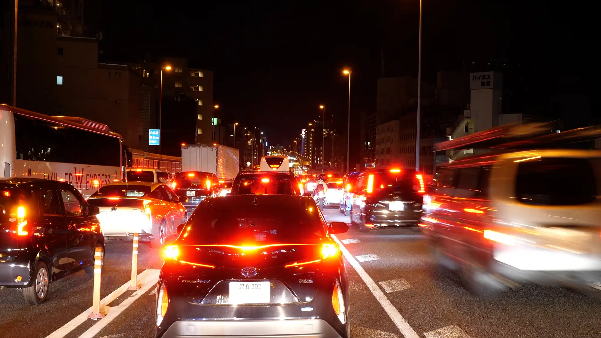 高速道路での故障時は、人命最優先で車外のガードレール外側など安全な場所へ退避し、安全三角表示板や発炎筒で後方警戒を徹底します。路肩でのタイヤ交換や応急修理など、危険な路上作業は絶対にダメです。 -